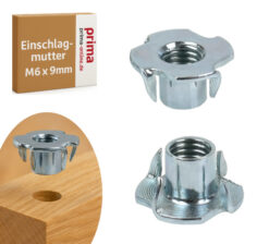 Einschlagmuttern M6 x 12mm Kohlenstoffstahl, mit 4 Spitzen für Holz Kunststoff (10/100 Stk.)