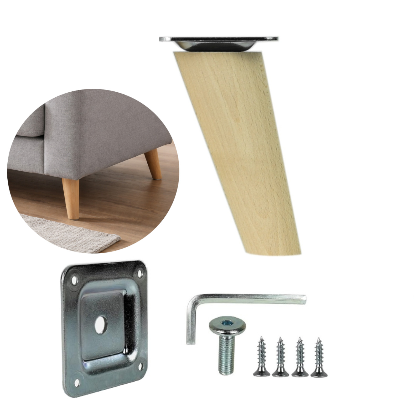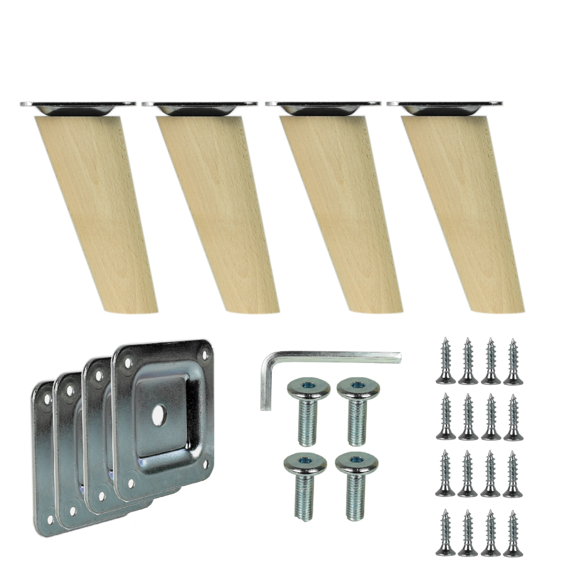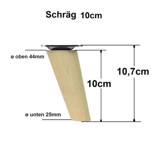 Möbelfüße Holz 10 cm aus massiver Buche überzeugt durch seine stabile Konstruktion und den dezenten Schrägwinkel, der Möbeln eine moderne, hochwertige Optik verleiht. Geeignet für Sofas, Kommoden, Schränke und Sideboards.