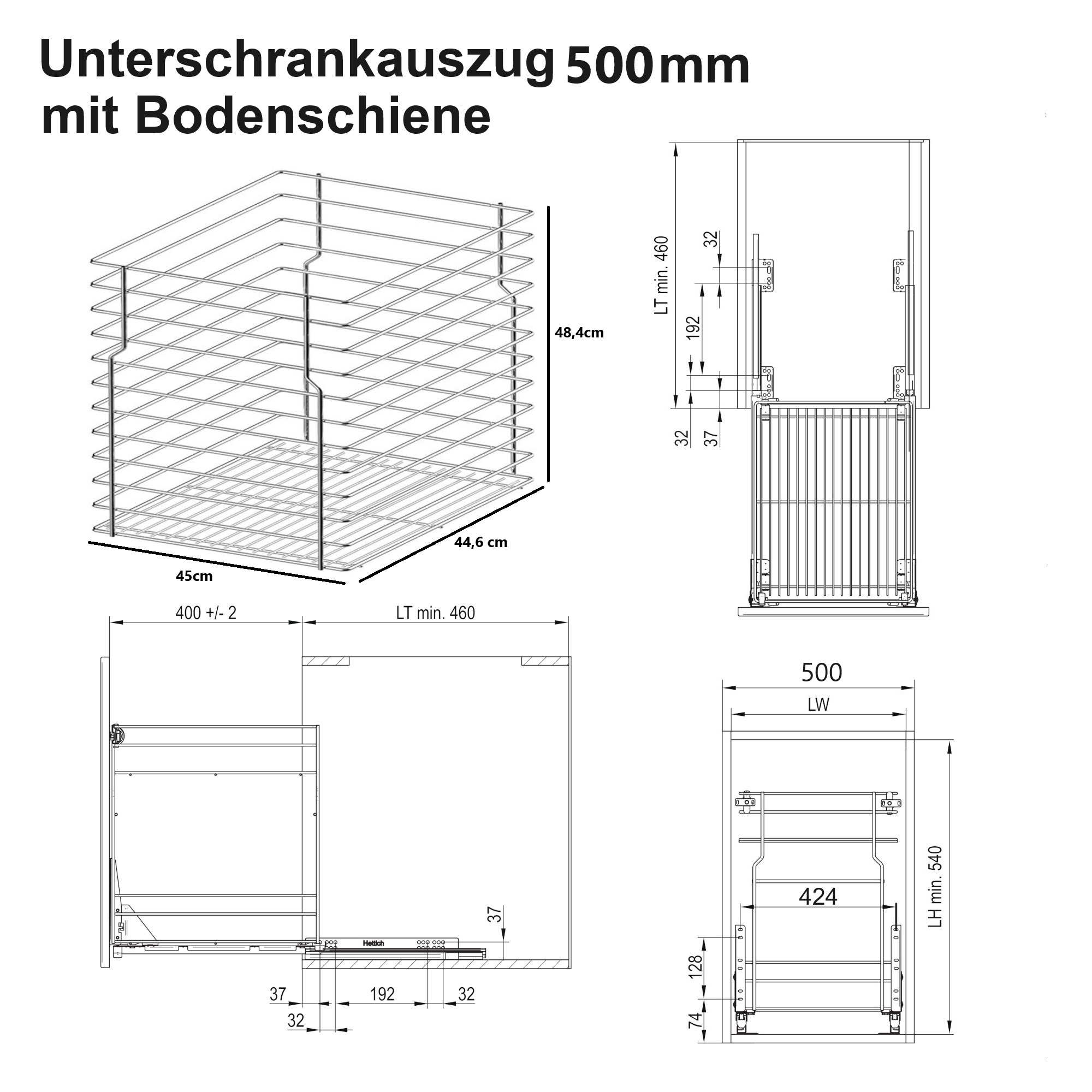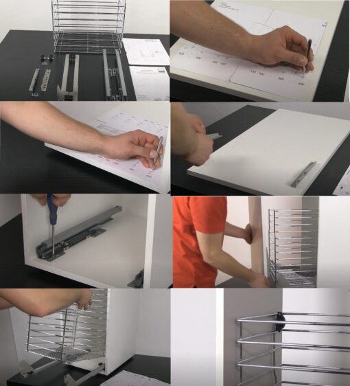 - Lieferumfang: 1× Korb, 2× Soft-Close-Schienen, Bohrschablone, Anleitung