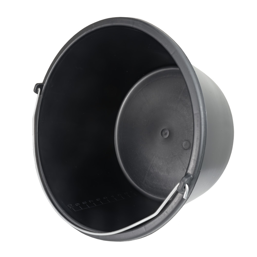 Solider Kunststoffeimer 12 Liter für Haushalt, Werkstatt, Garten oder Baustelle. Mit robuster Innenprägung in Litern, stabilem Metallgriff und konischer Form – stapelbar, leicht, universell einsetzbar.
