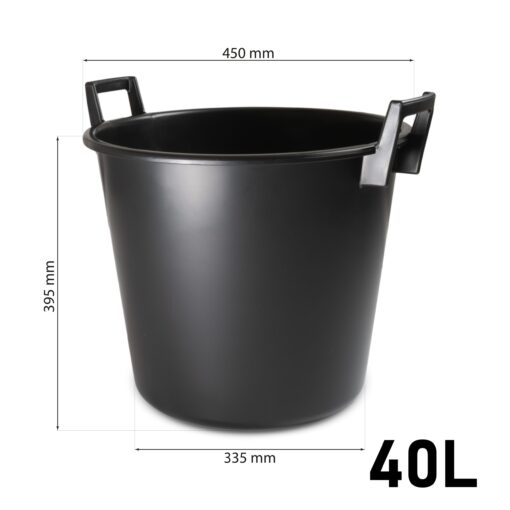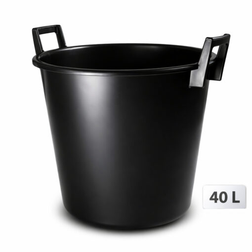 Baueimer 40 L Schwarz mit 2 Griffen – Robuster Kunststoffeimer auch als Pflanzkübel