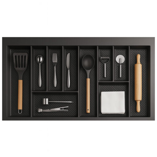Besteckkasten Schubladen 90 cm graphit matt – zuschneidbarer Schubladeneinsatz