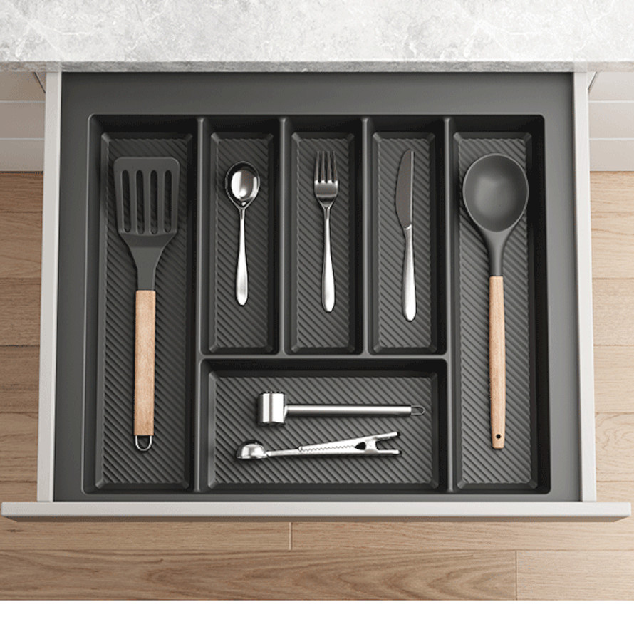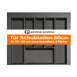Besteckkasten für Schubladen 60 cm Graphit Matt – zuschneidbarer Schubladeneinsatz