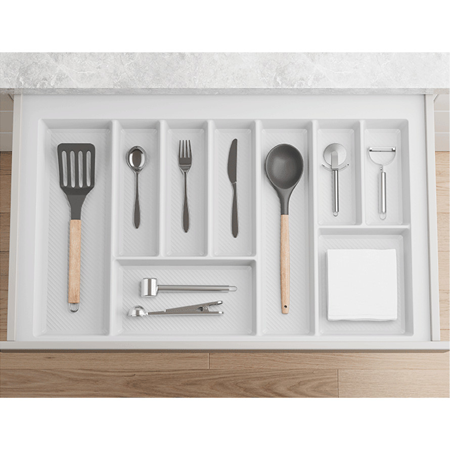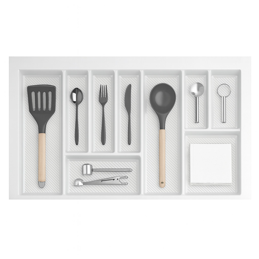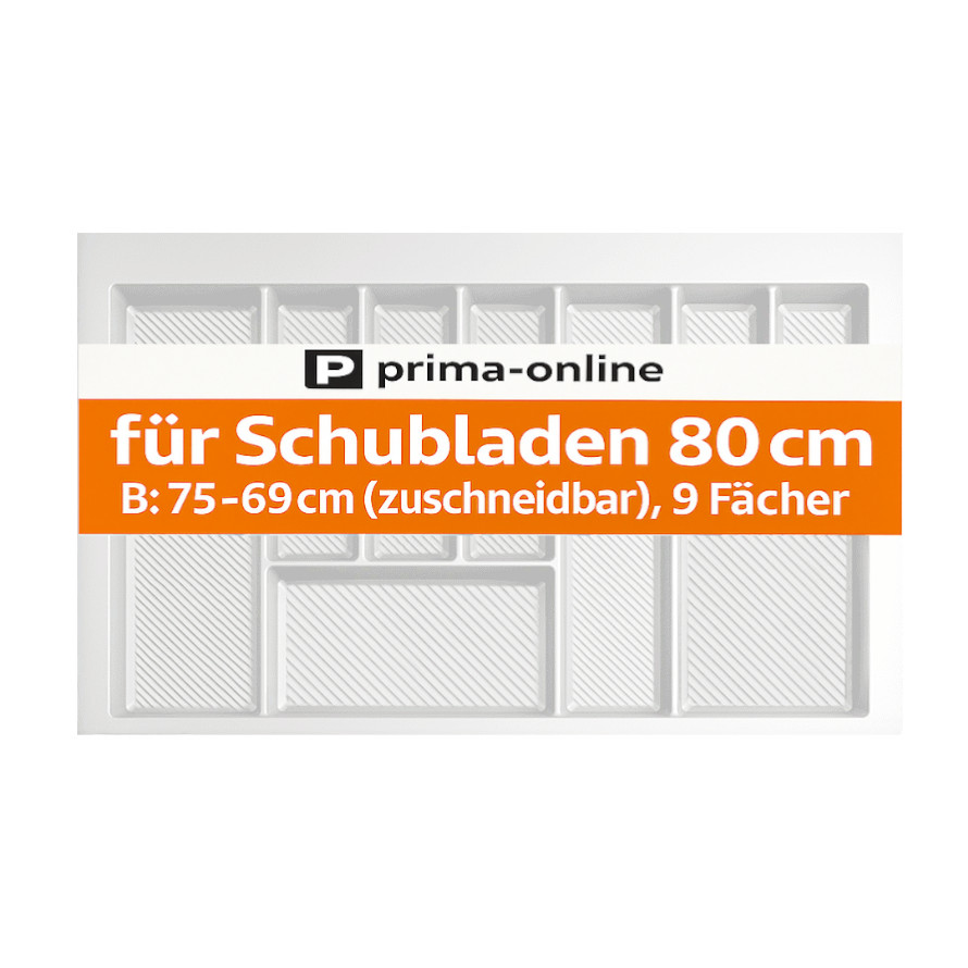 Besteckkasten für Schubladen 80 cm Weiß – zuschneidbarer Schubladeneinsatz