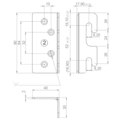 - Hakenbeschläge: 90 x 40 x 30 mm, Materialstärke 2 mm