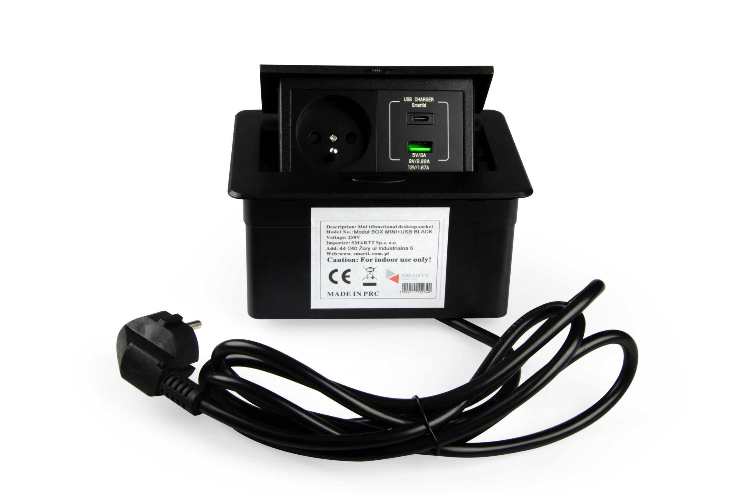Einbausteckdose Mini 230V mit USB 1×230 V + 2×USB (Typ A & C) – Schwarz Matt,