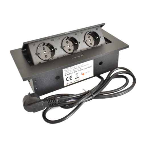 Versenkbare Einbausteckdose versenkbar Schwarz 3x Schuko 240V
