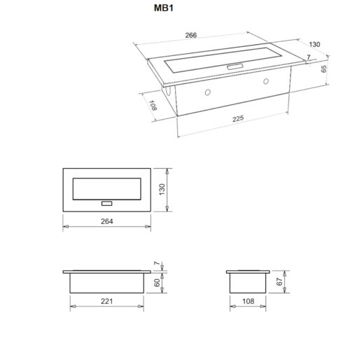 - Modell: MB1 – Rechteckige Abdeckung mit eingebautem Klickmechanismus.