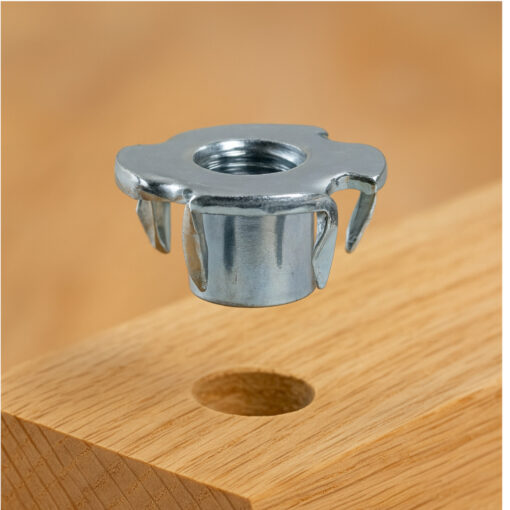 Die Einschlagmutter M6 x 15 mm ermöglicht ein belastbares metrisches Innengewinde in Holz.