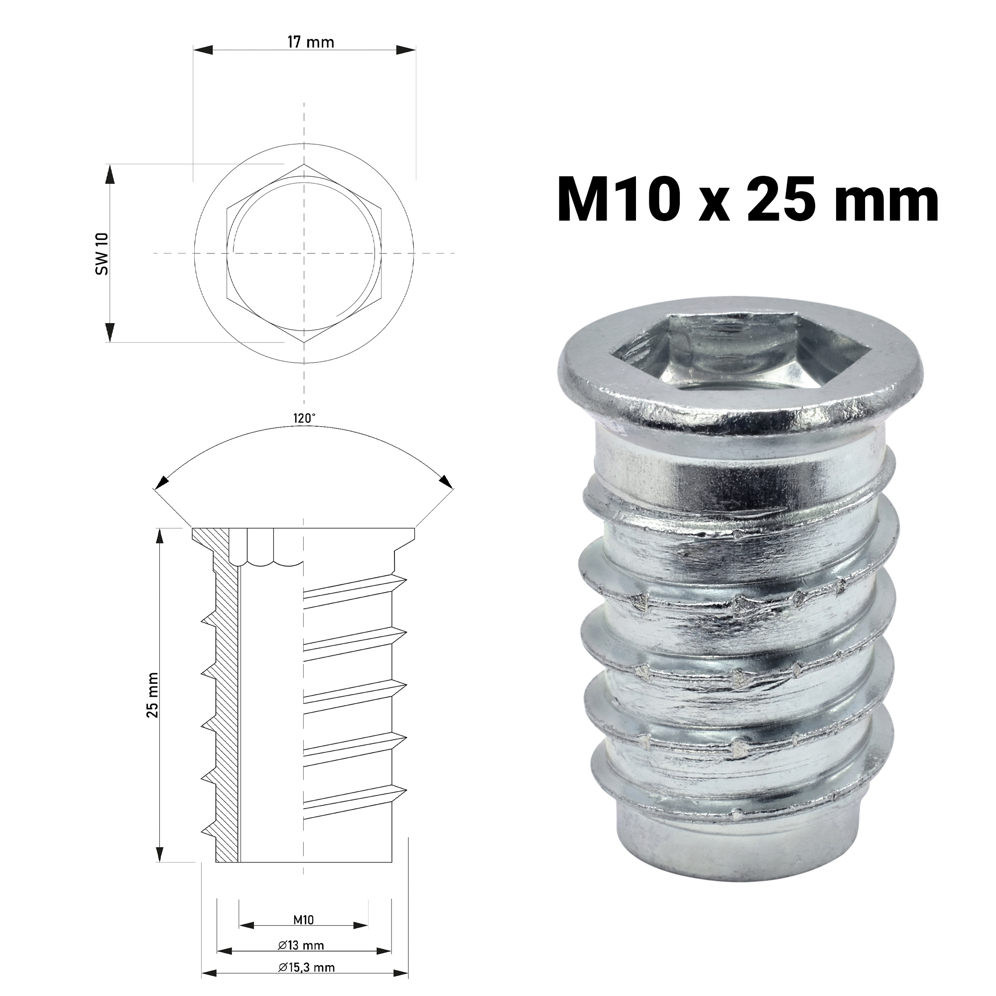 Einschraubmutter M10 x 25 mm – verzinkter Stahleinsatz für Holz & Möbelbau