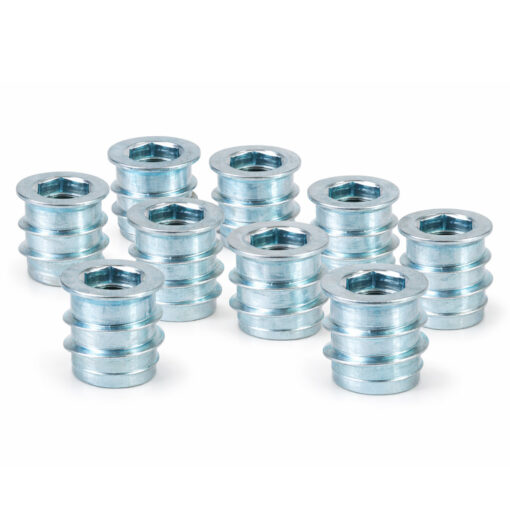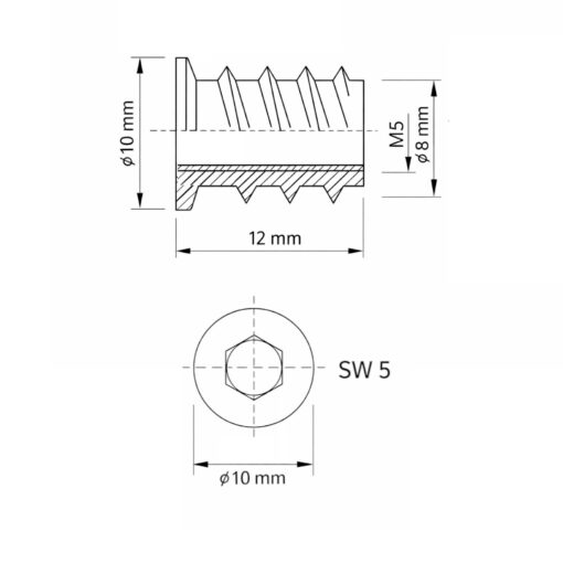Die Einschraubmutter M5 10×12 verzinkt eignet sich ideal für stabile, lösbare Verbindungen in Holz, MDF und Spanplatten.