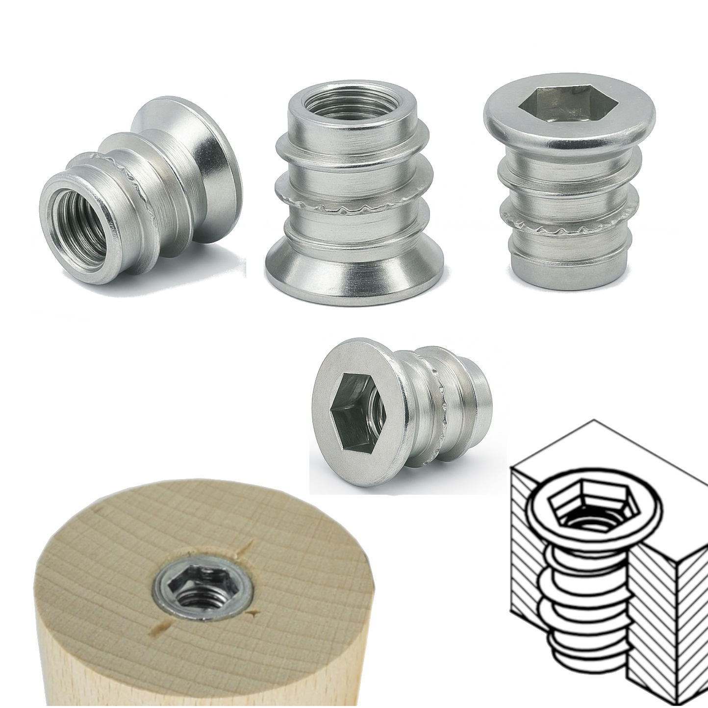 Gewindemuffe M6 selbstschneidender Gewindeeinsatz für stabile, wieder lösbare Schraubverbindungen im Möbelbau.