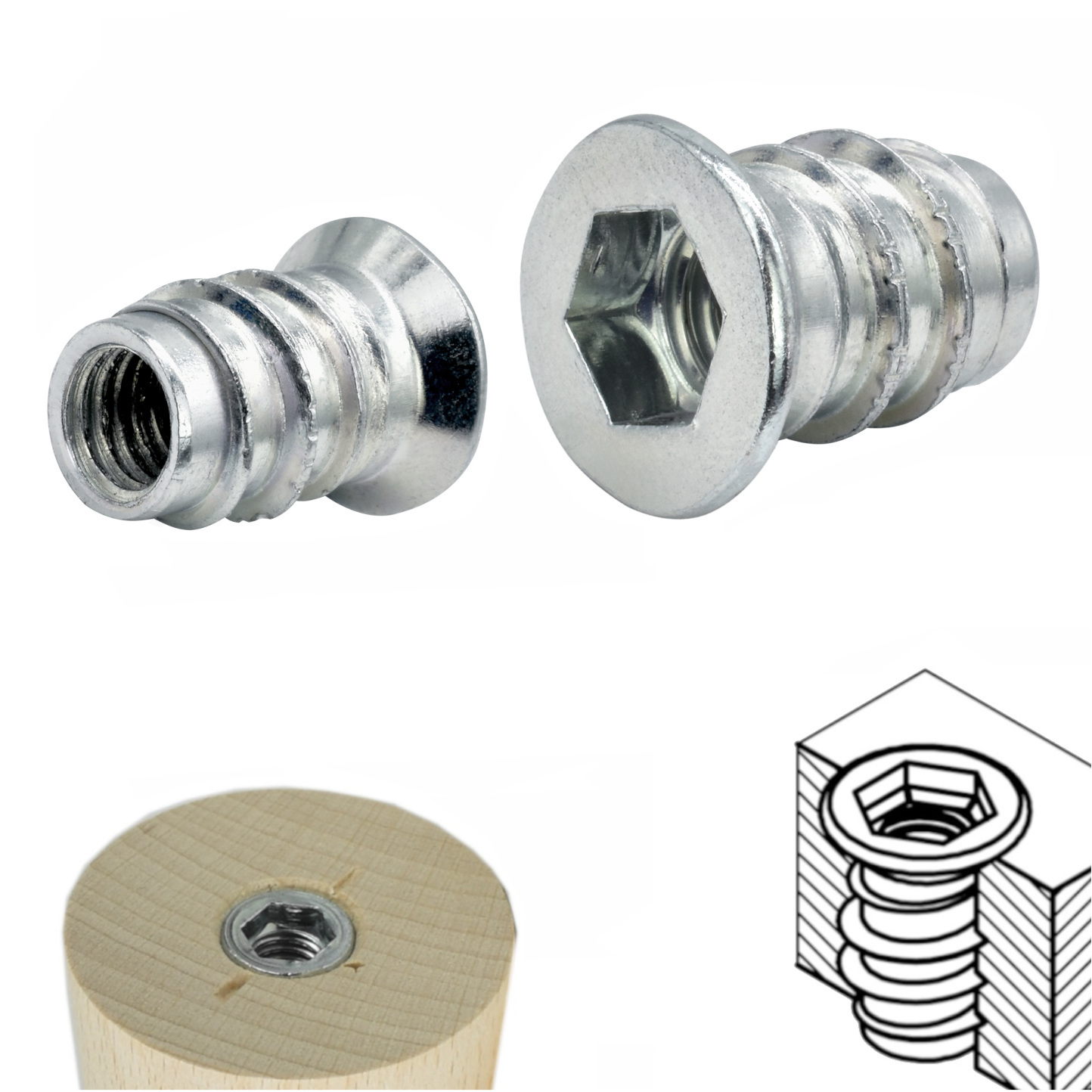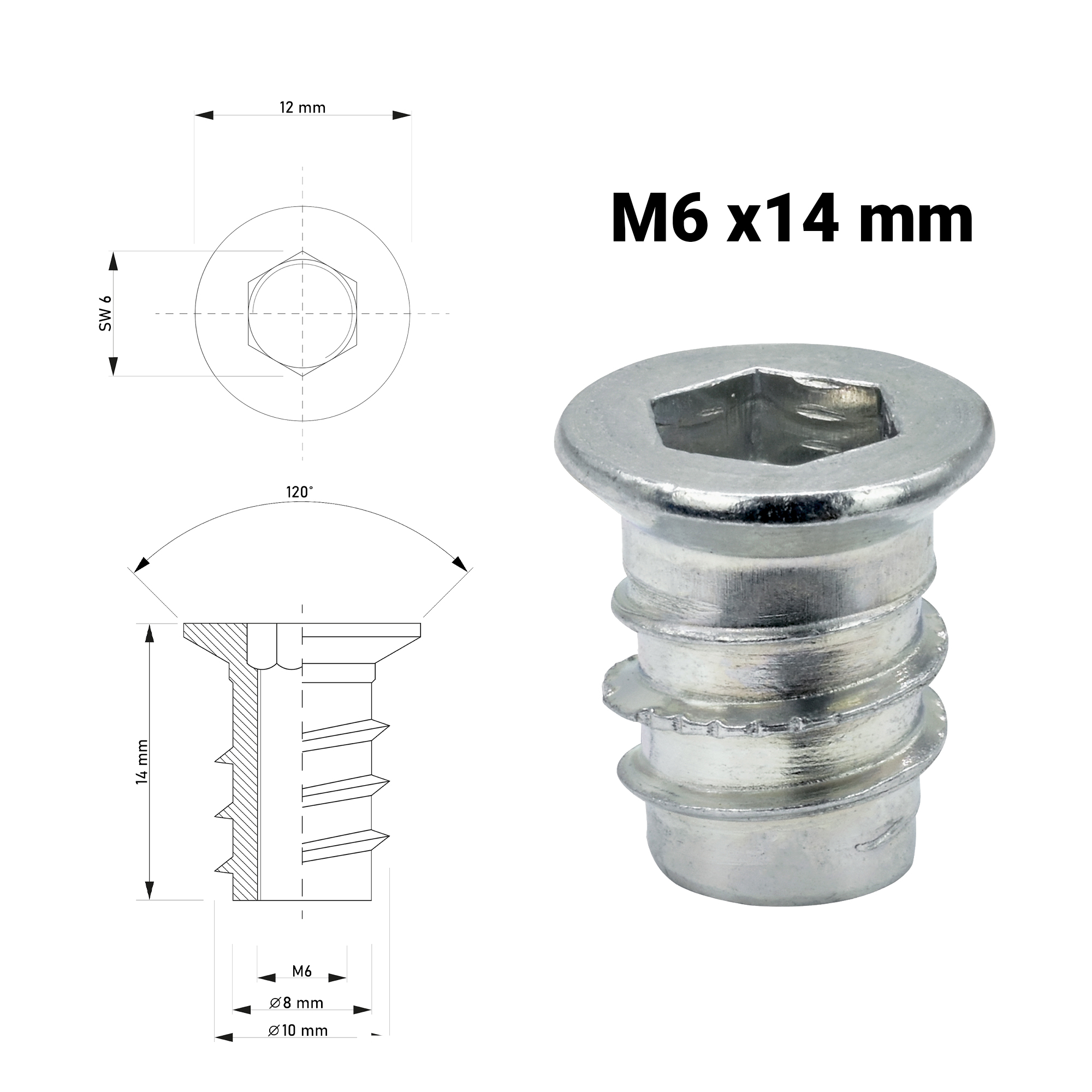 Einschraubmutter M6 x 14 mm – verzinkter Stahleinsatz für Holz & Möbelbau
