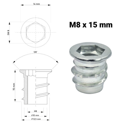 Einschraubmutter M8 x 15 mm – verzinkter Stahleinsatz für Holz & Möbelbau