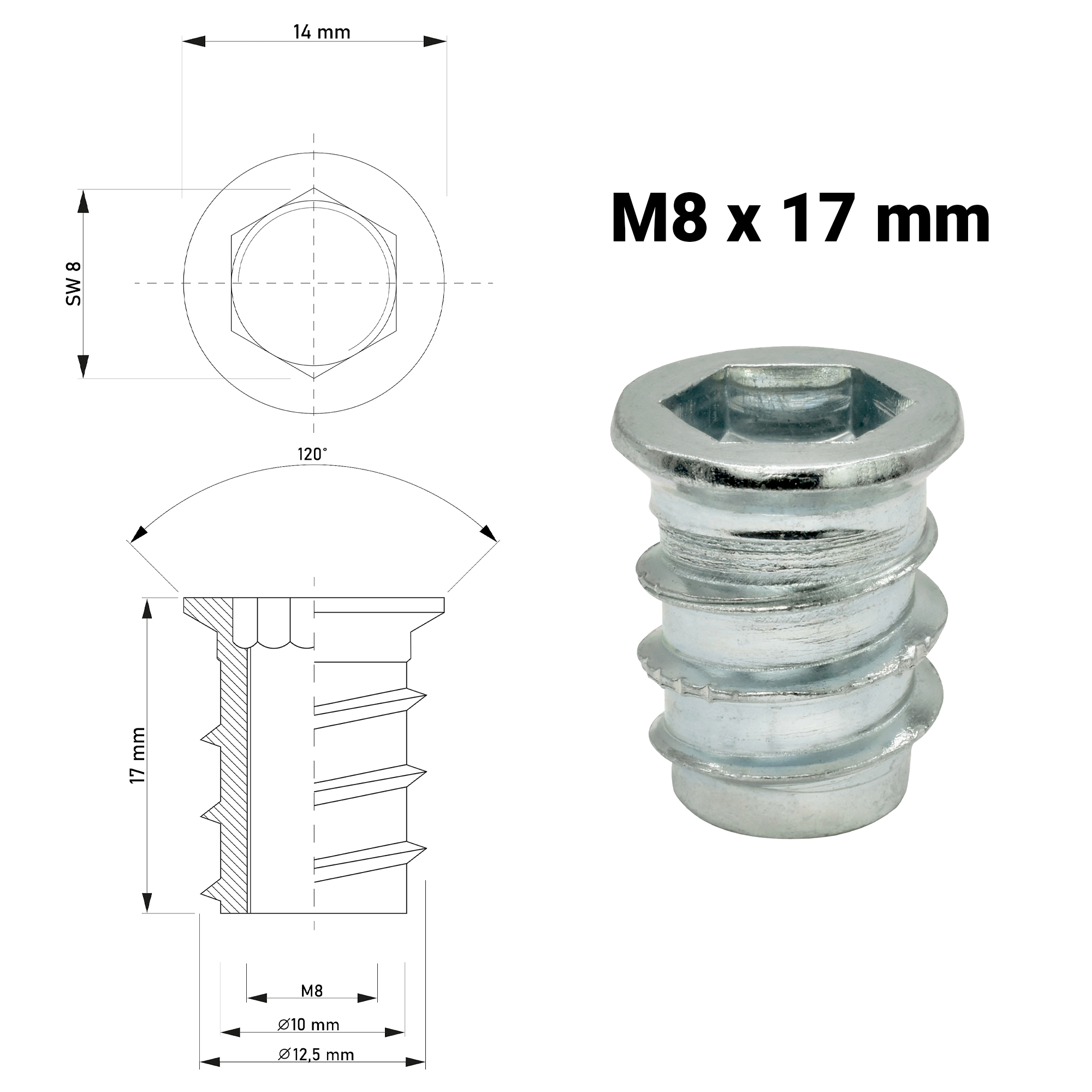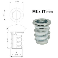 Einschraubmutter M8 x 17 mm – verzinkter Stahleinsatz für Holz & Möbelbau
