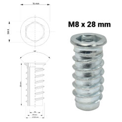 Einschraubmutter M8 x 28 mm – verzinkter Stahleinsatz für Holz & Möbelbau