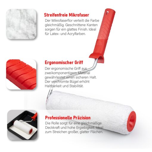 Farbroller-Set MIKROFASER 240 mm – streifenfreie Ergebnisse auf glatten Flächen
