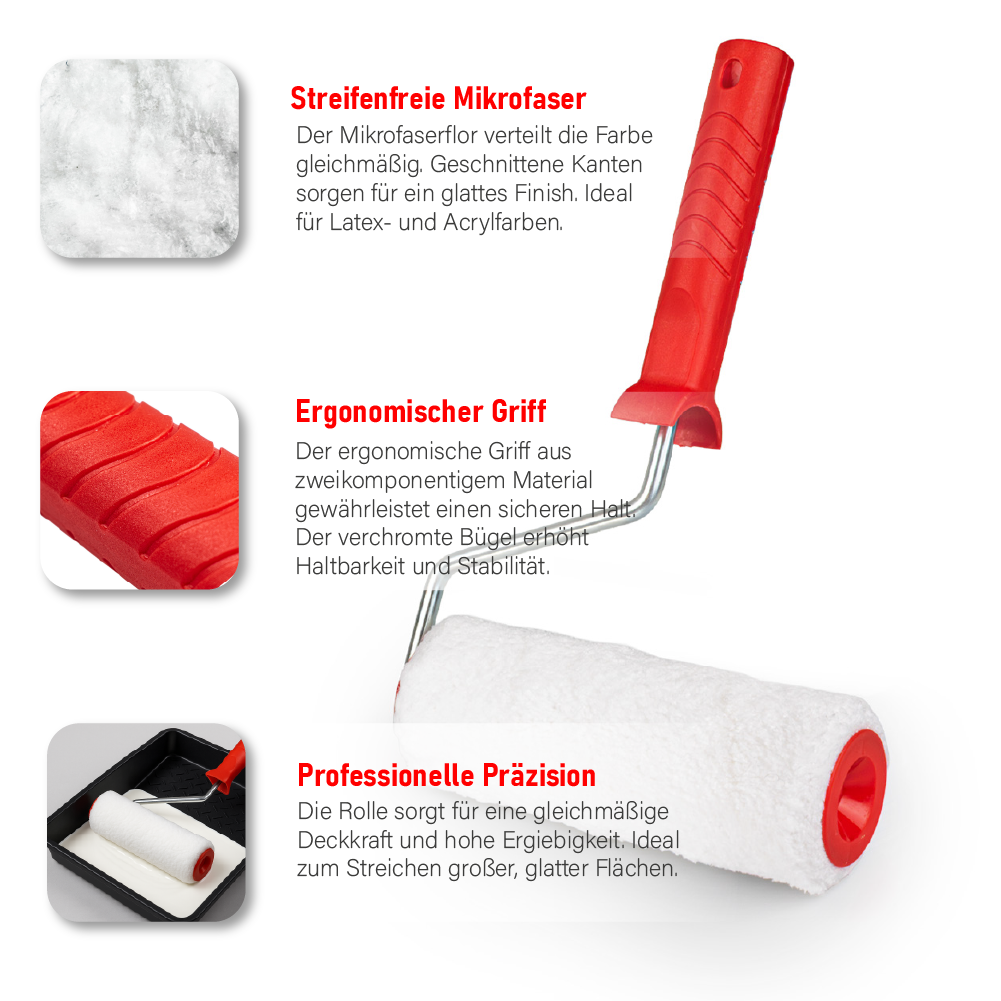 Farbroller-Set MIKROFASER 180 mm – streifenfreie Ergebnisse auf glatten Flächen