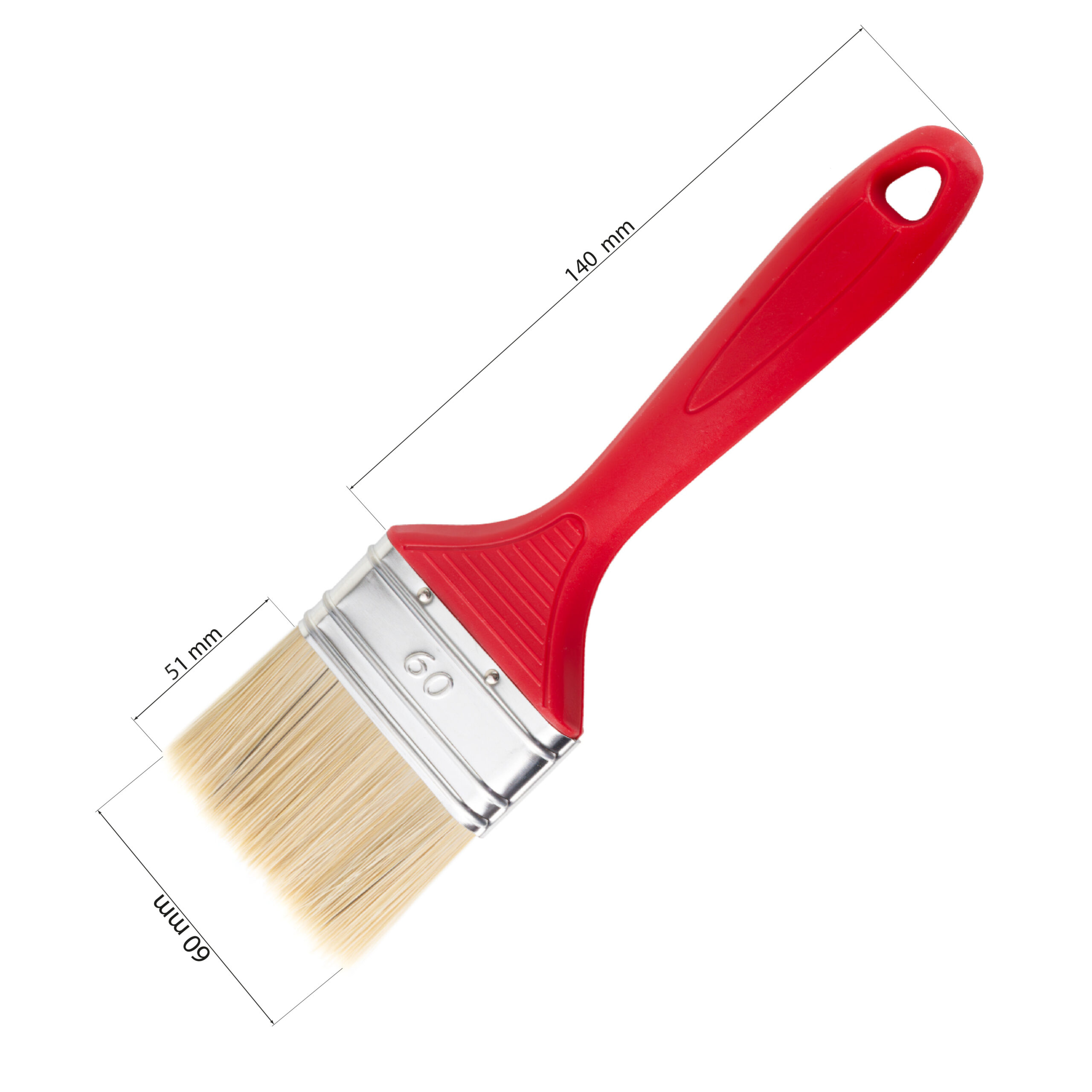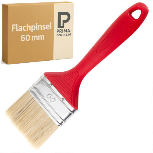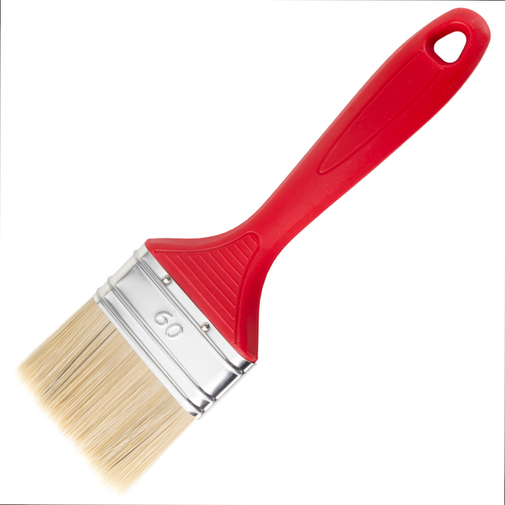 Flachpinsel 60 mm – Synthetik/Naturborsten-Mix, roter Kunststoffgriff