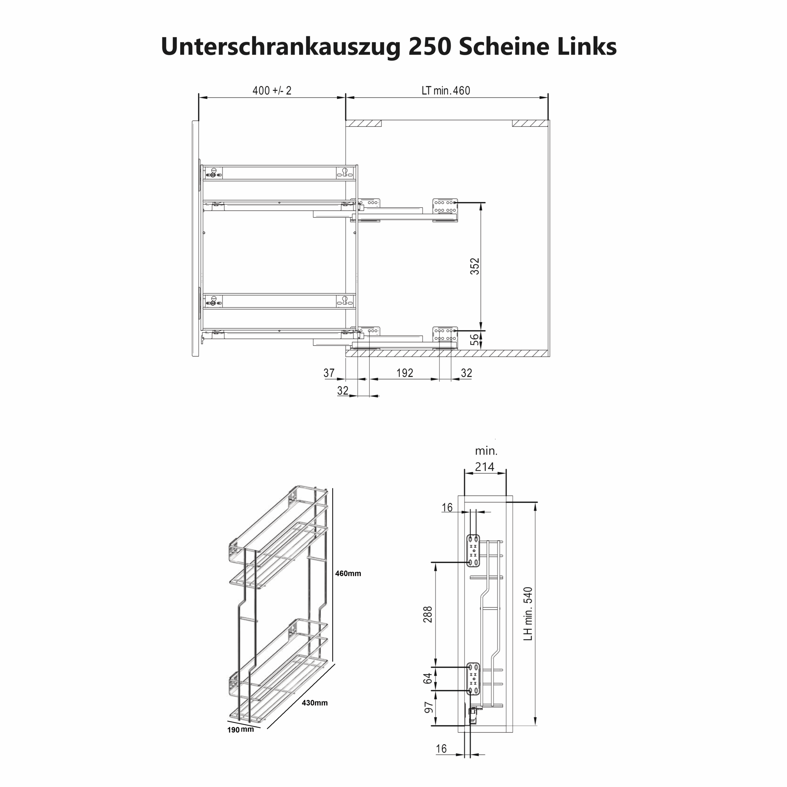 • Passend: 250 mm Unterschränke (Innenbreite ≥ 214 mm)