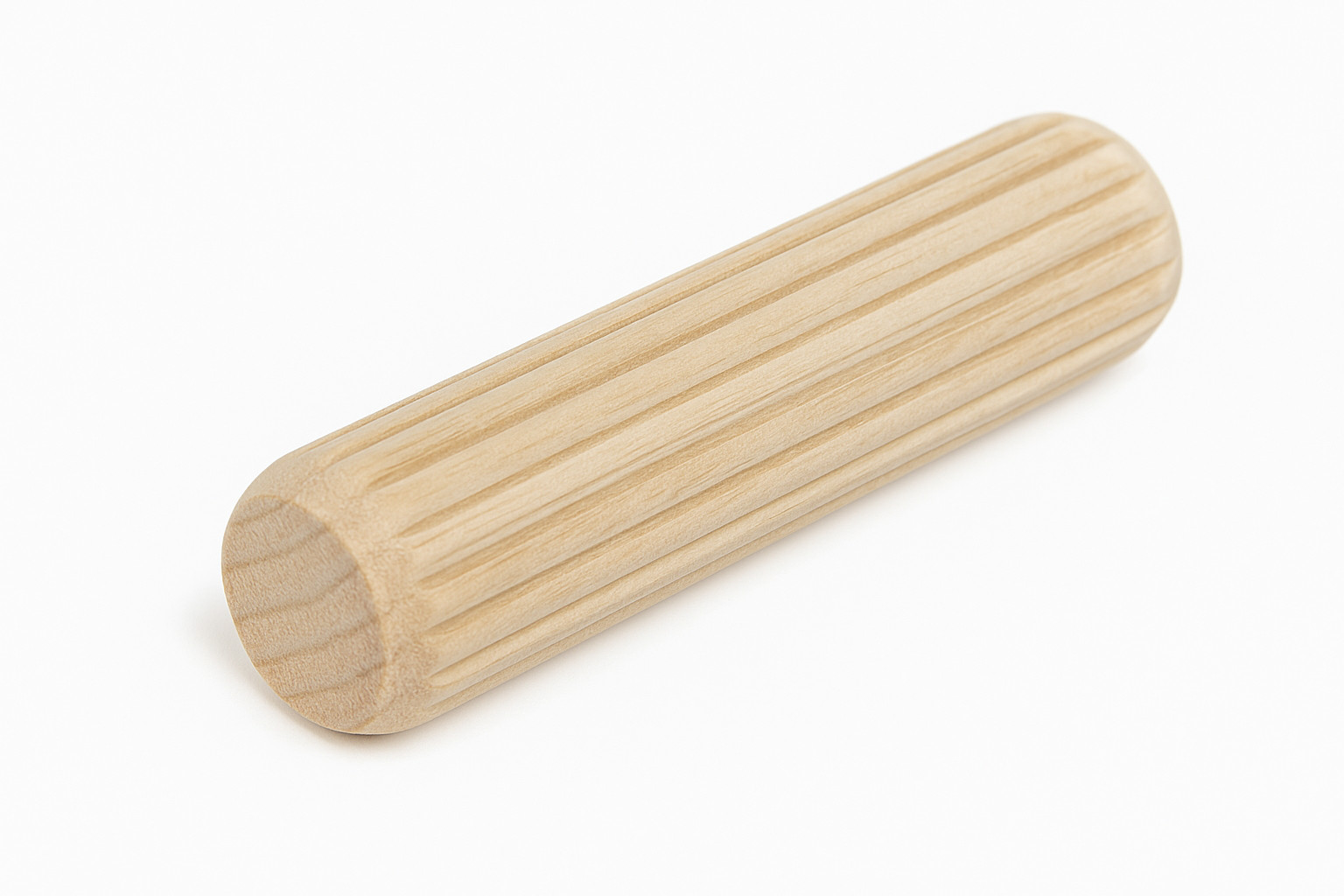 Riffeldübel Ø 8 mm aus Buche, längs geriffelt und beidseitig angefast.