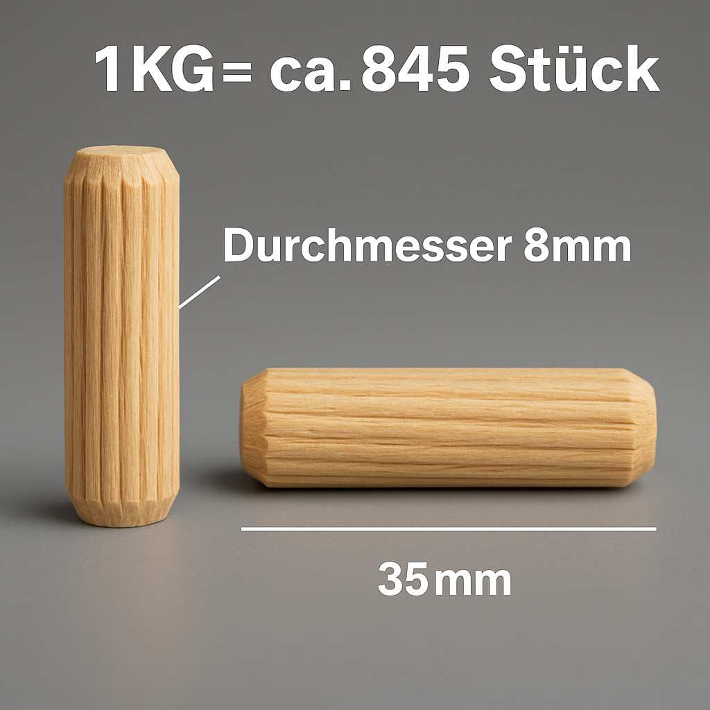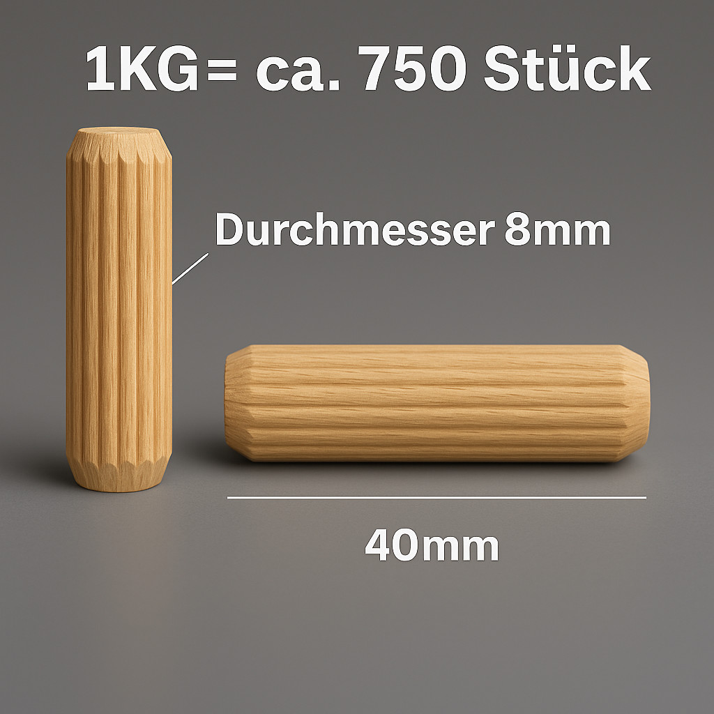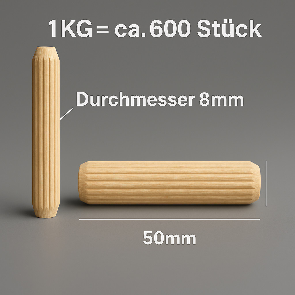 • 1 kg Holzdübel 8 mm in der ausgewählten Länge (kein Mix)
