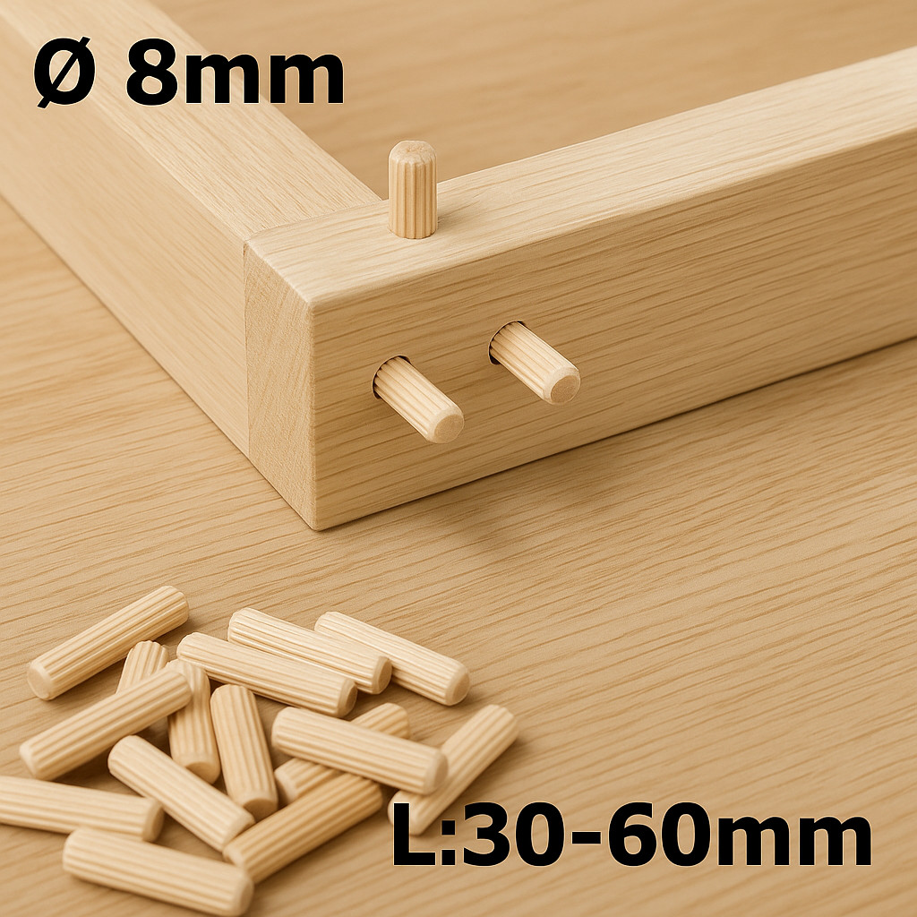 Holzdübel 8 mm – Riffeldübel Buche, 30–60 mm (1 kg)