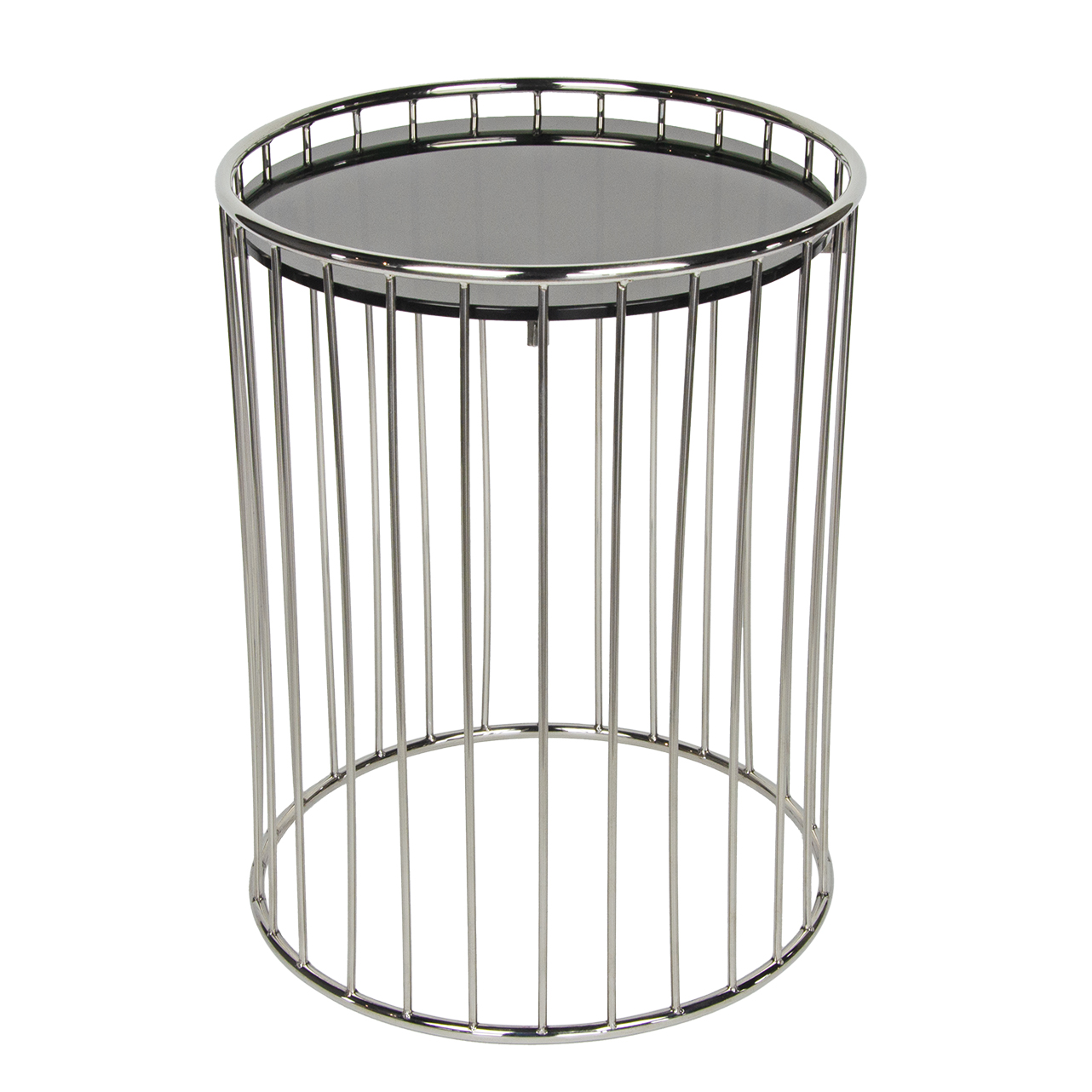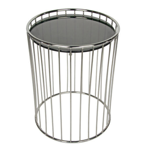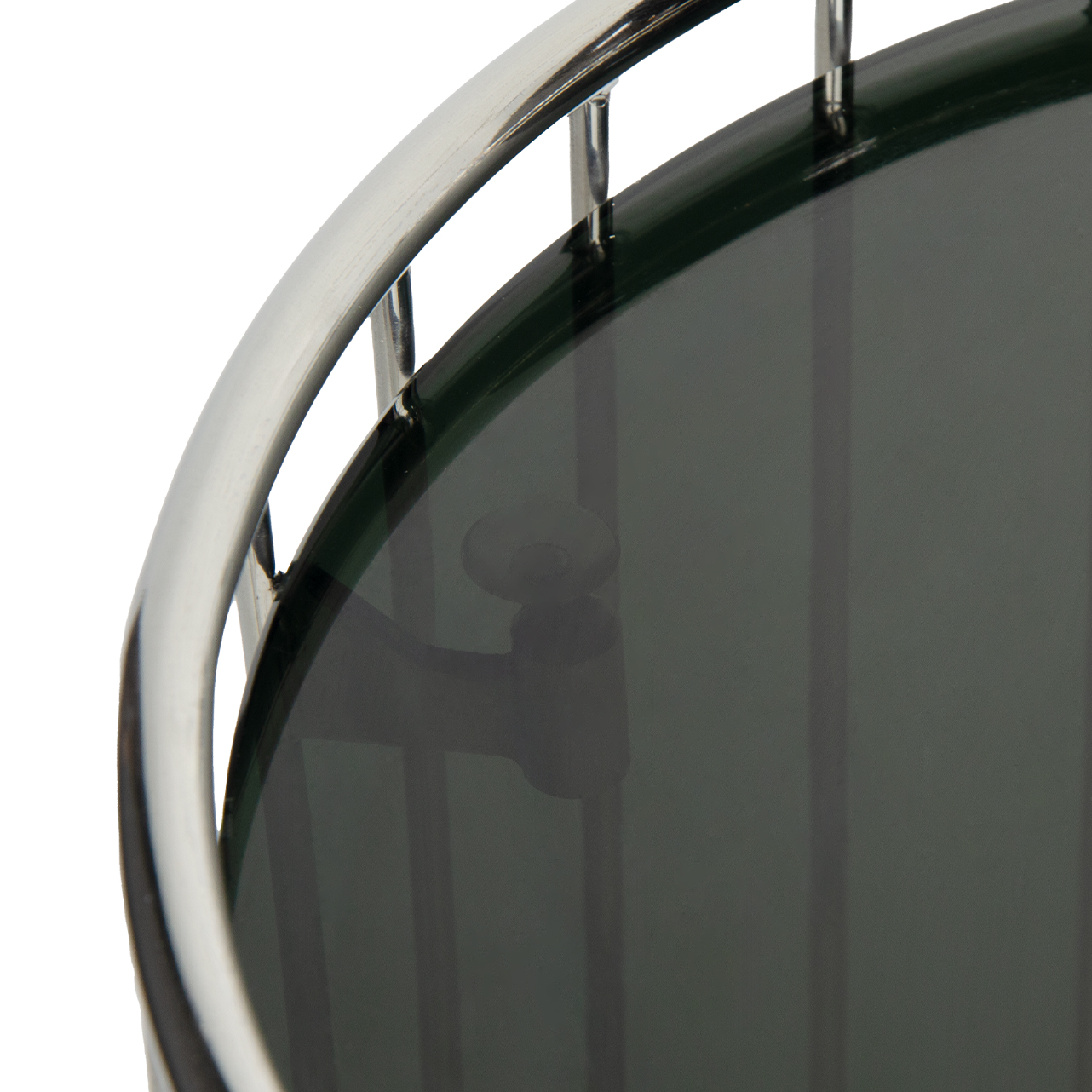 Kleiner Couchtisch rund – Glasplatte Schwarz, Chromgestell, Loft Stil