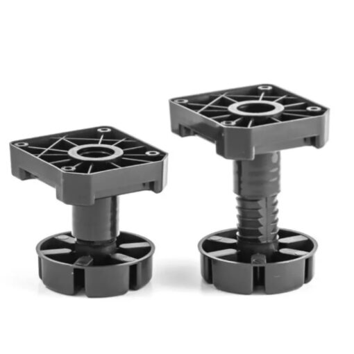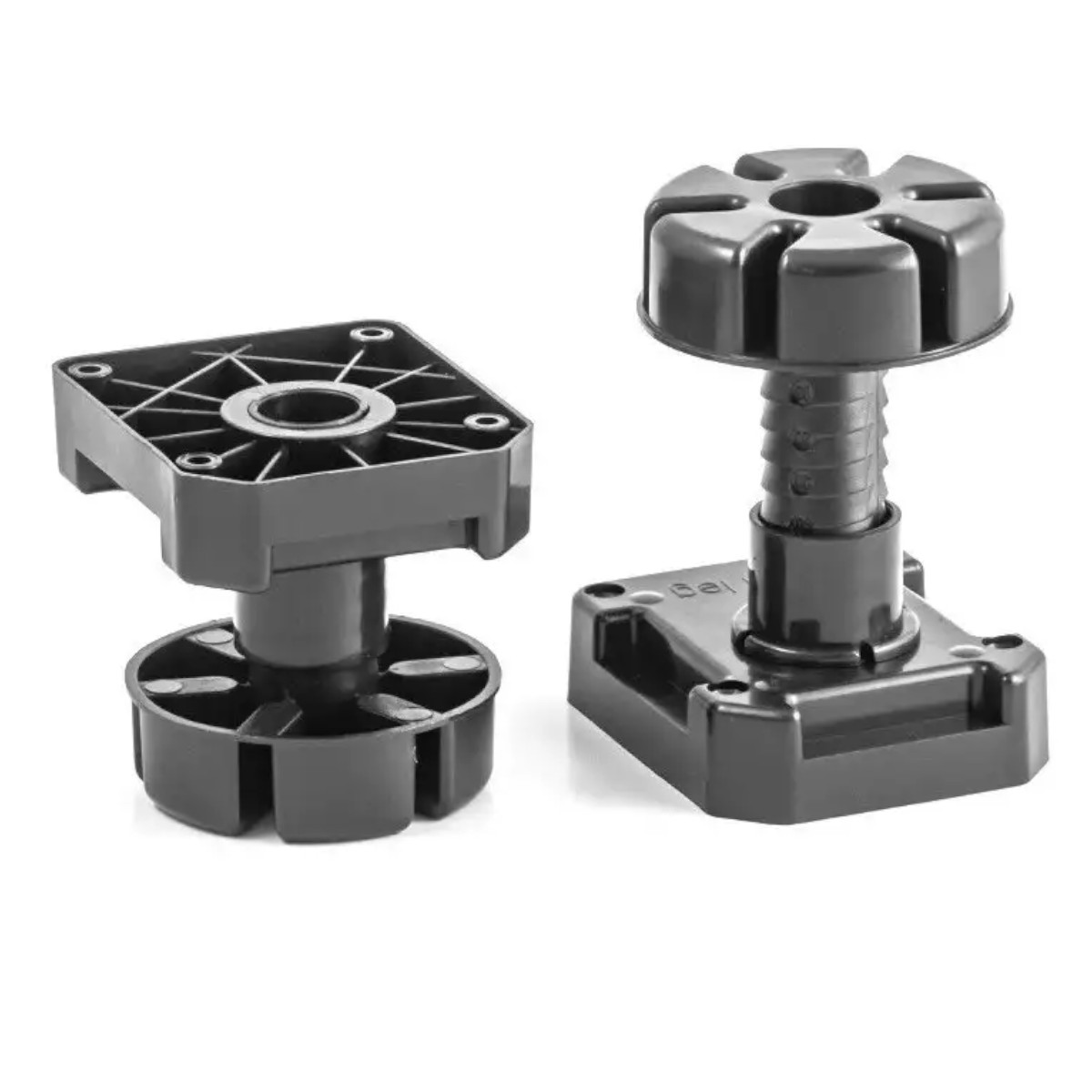 Verstellbare PP-Sockelfüße für präzise Höhenkorrektur von Küchen- und Möbelkorpussen. Hohe Stabilität, schnelle Justierung und Tragkraft bis 450 kg/Fuß.