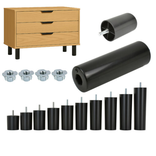 Kunststoff Möbelbeine Ø 50 mm – 4er-Set mit M8 Einschlagmuttern