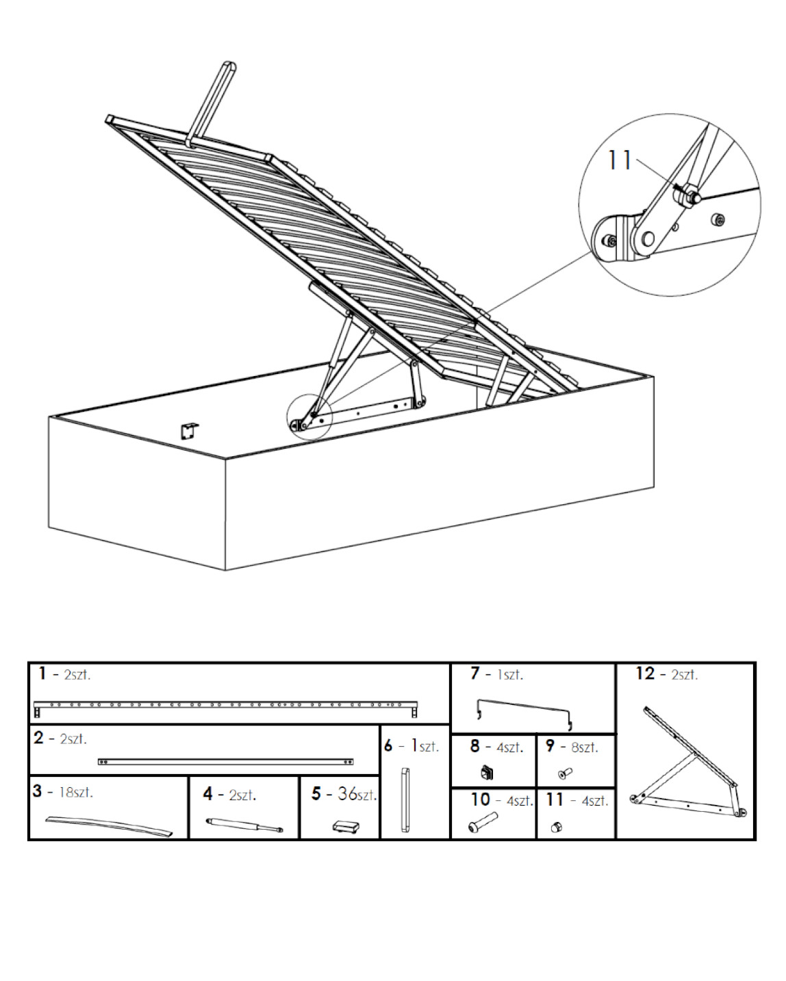 Lattenrost 90×200 mit Bettkastenfunktion – Lift mit Gasdruckfedern