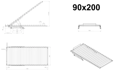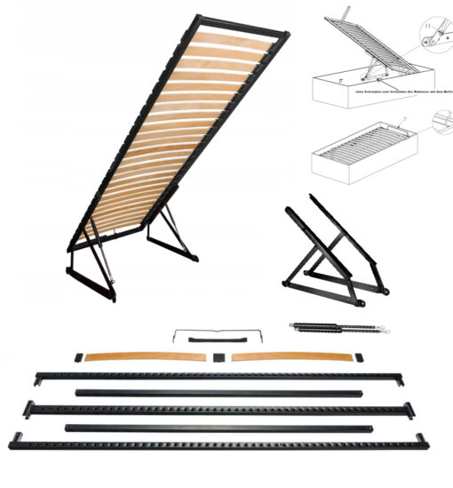 • Lieferumfang: Lattenrost 90×200 mit kompletter Hebemechanik