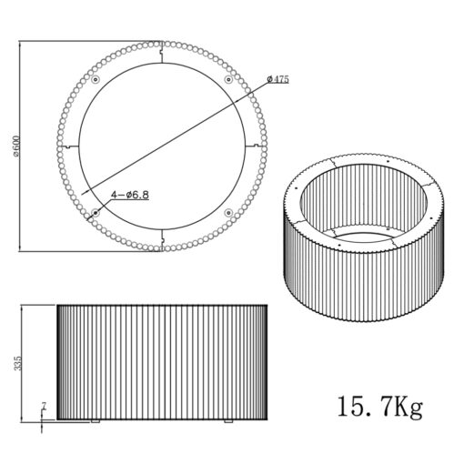 • Geriffeltes Design: Rundes Metallgestell mit markanter Riffelstruktur