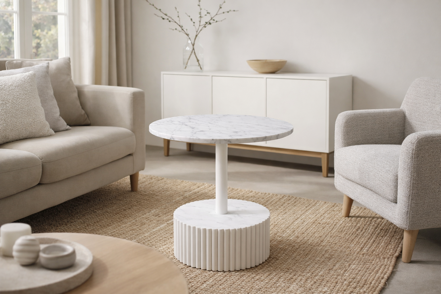 Suchen Sie ein elegantes Highlight für kleine Räume? Das Tischgestell in der Variante Small besticht durch seine schlanke Silhouette und die markante vertikale Riffelstruktur. Perfekt als Basis für filigrane Nachttische oder dekorative Blumenständer.