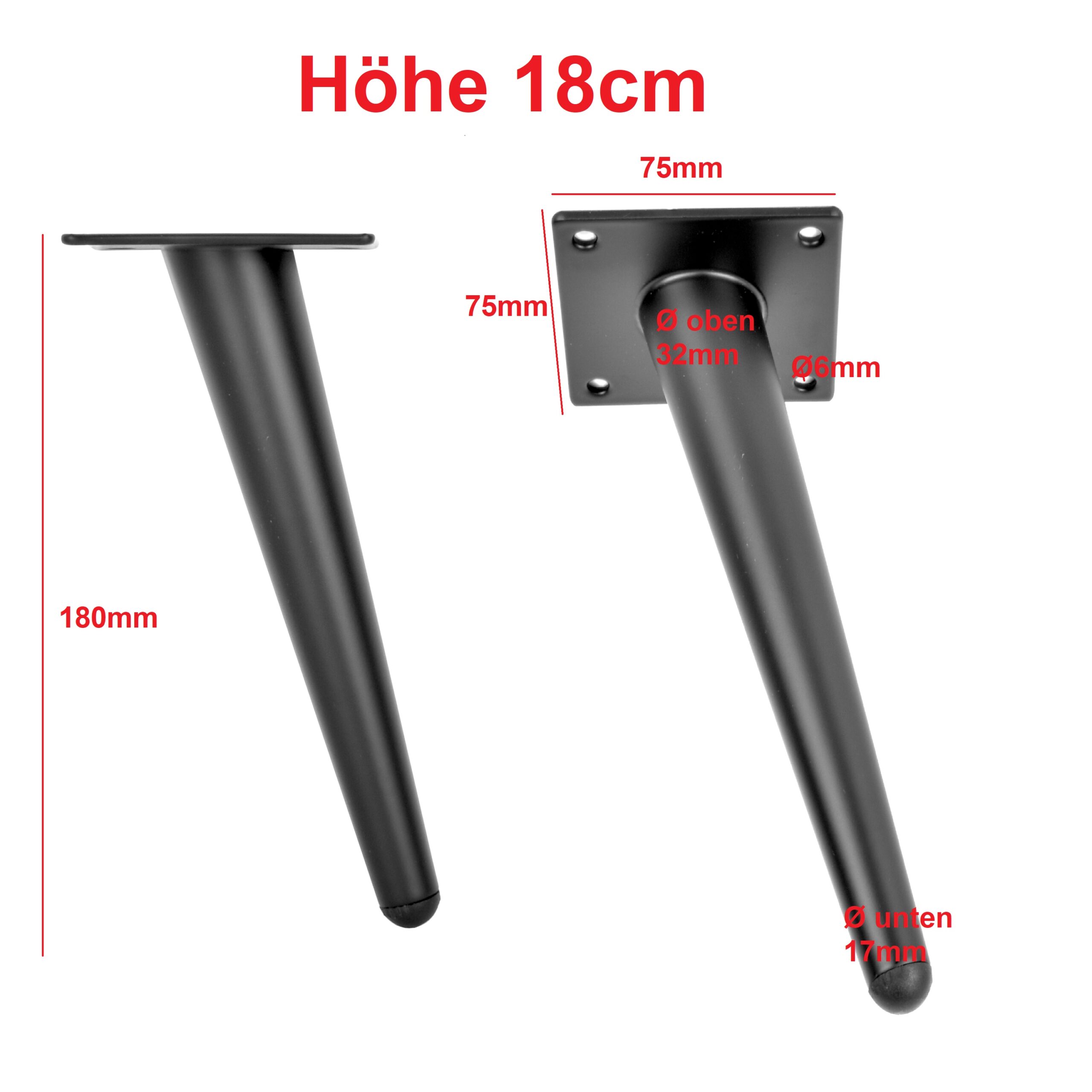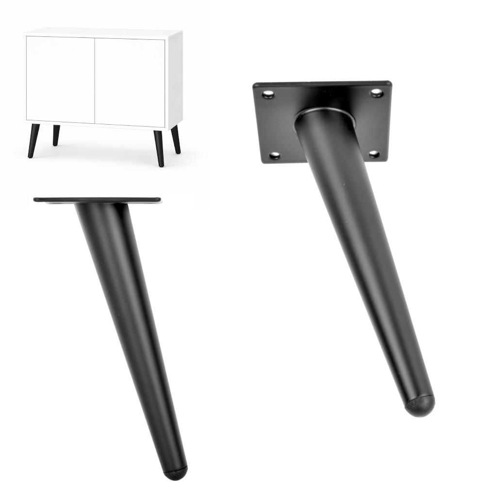 Metallfüße 18 cm schwarz matt aus Stahl – schräge Möbelbeine für Schrank, Kommode, Lowboard oder Sofa.