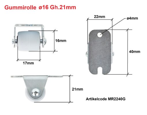 Möbel Bockrolle 21 mm – Gummirad Ø16 mm ohne Bremse 4er Set