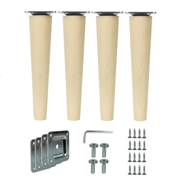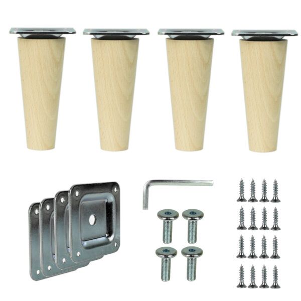 Möbelbeine Holz 4er Set – Buche natur, konisch, inkl. Montageset