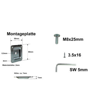 | Montageplatten | 58×58×2 mm, verzinkt, Bauhöhe 7 mm |