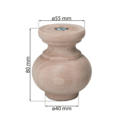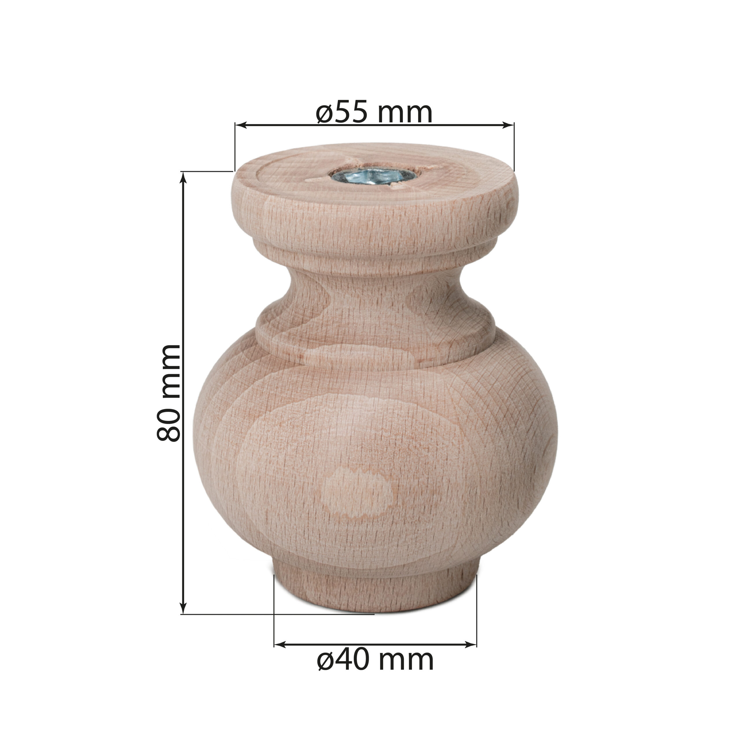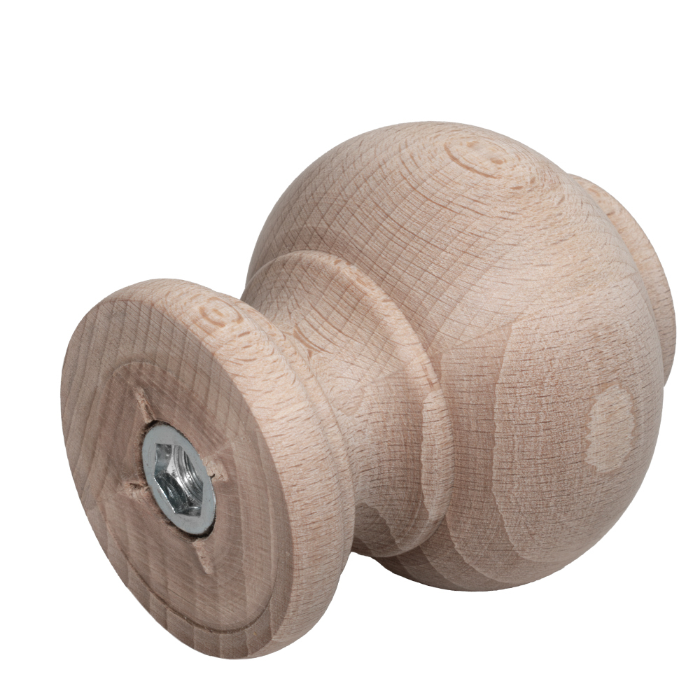 Möbelfüße Buche Vasenform – gedrechselter Kugelfuß H 80/100 mm mit M10 Gewinde