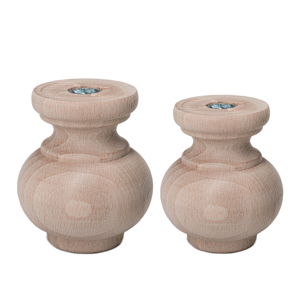 Die Möbelfüße Buche Vasenform sind gedrechselte Holzfüße aus massivem Buchenholz.