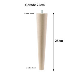 Der Möbelfuß Buche 25 cm ist ein stabiler, konischer Massivholzfuß für hochwertige Möbel.