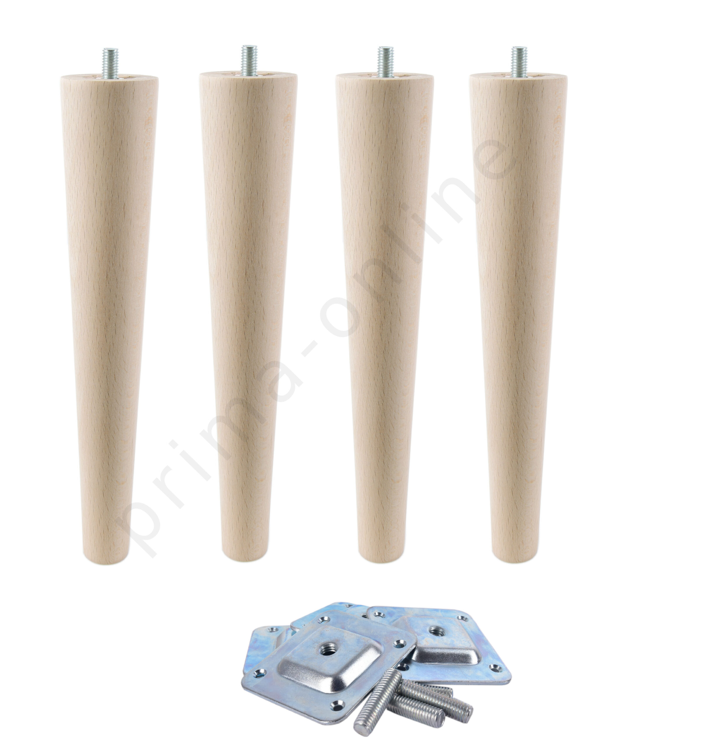 Möbelfüße Holz 25 cm – konisch, Massivholz Buche, inkl. Montageset TYP1