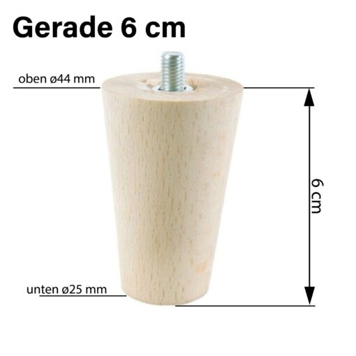 Möbelbein Buche 6 cm bietet hohe Stabilität und präzise Verarbeitung. Die konische Form sorgt für moderne Optik, Ideal zur Aufwertung von Sofa, Schrank, Bett oder Sideboard.