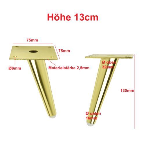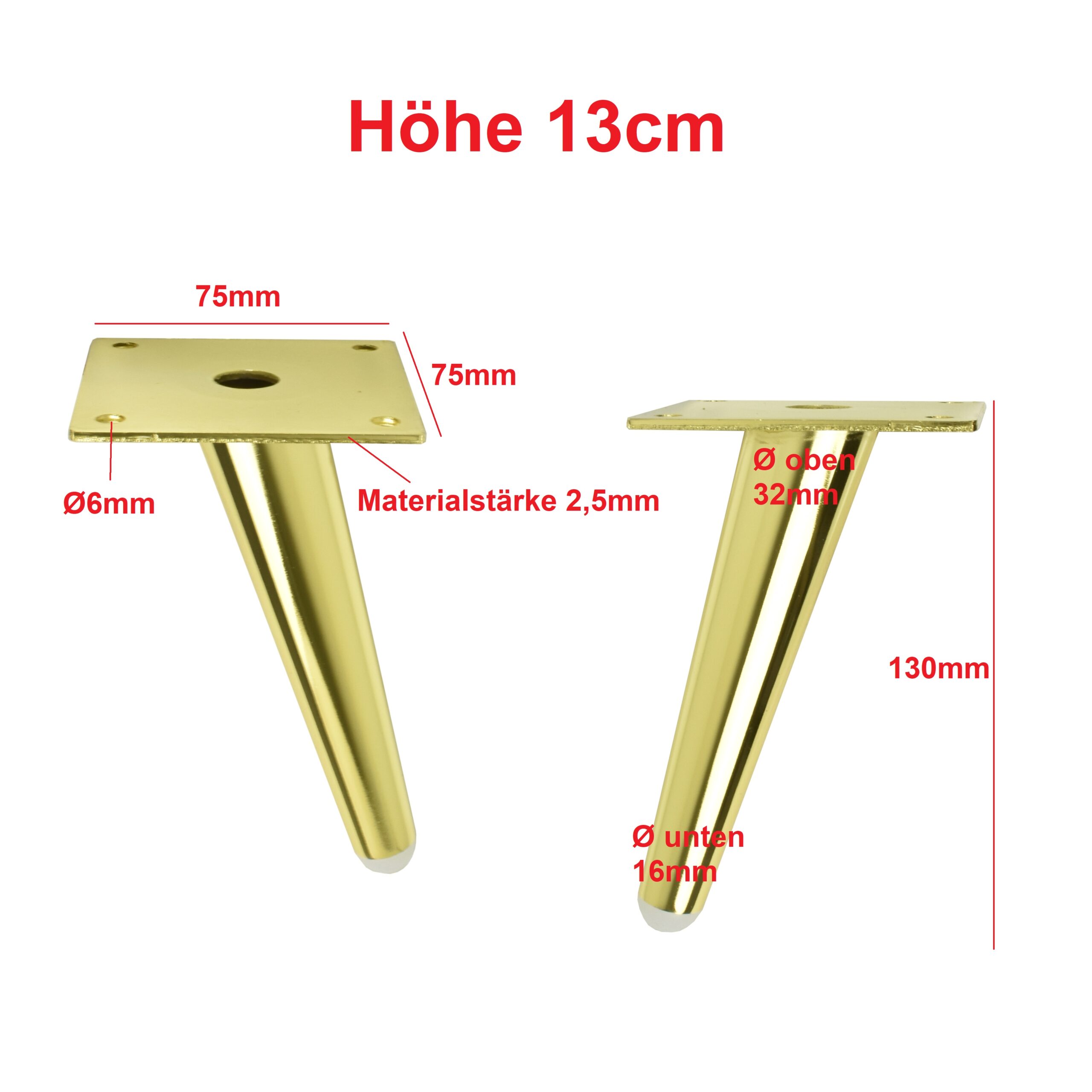 Möbelfüße Metall 13 cm Gold Glanz – schräg, konisch