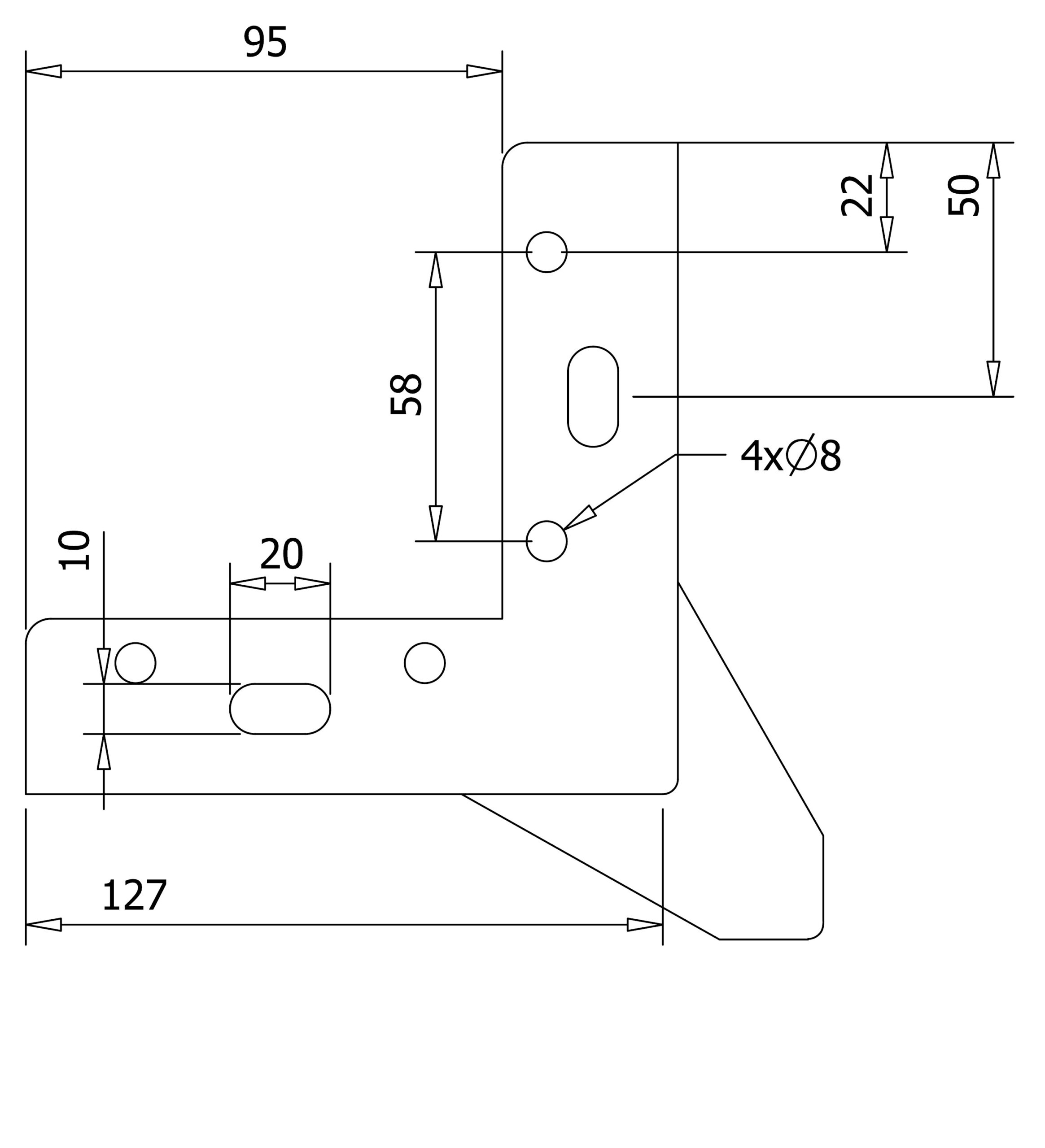 • Montage: 4 × Ø 8 mm + 2 × 10 × 20 mm