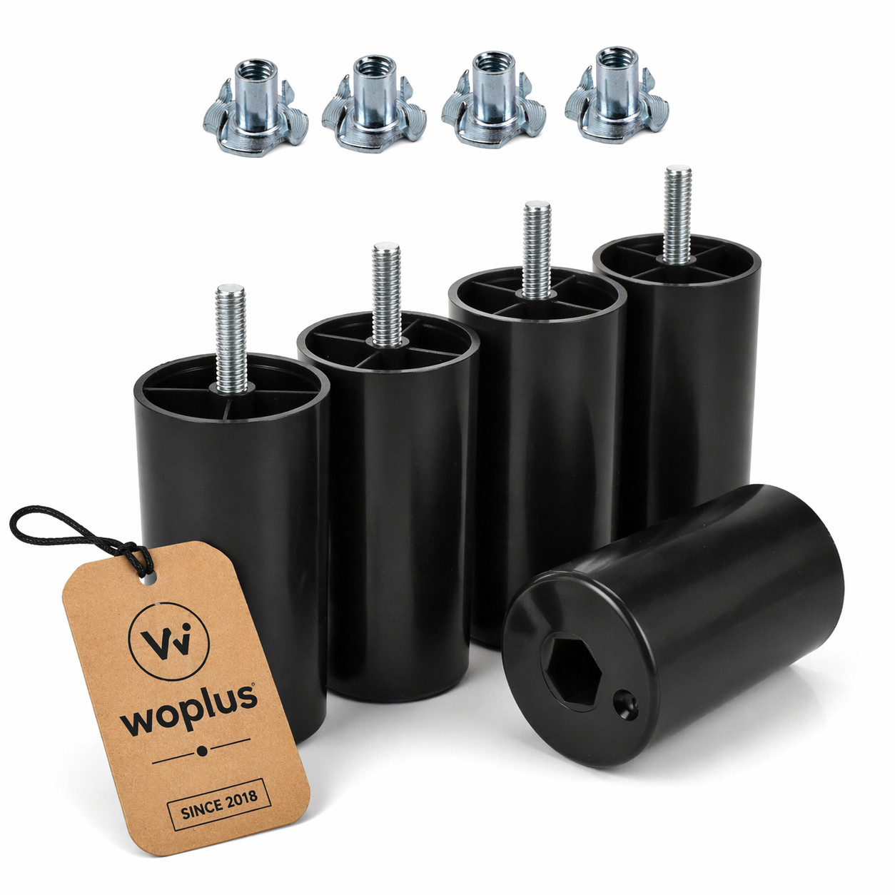 Kunststoff Möbelbeine Ø50 mm mit Einschlagmuttern bieten eine stabile und flexible Lösung für Möbel mit variabler Höhe von 50–150 mm. Ideal für Sofas, Betten, Kommoden und Sideboards – schnelle Montage dank vormontiertem M8 Gewinde.