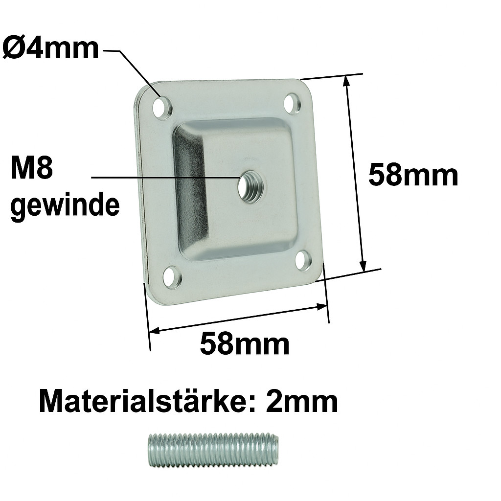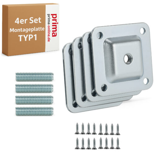 Montageplatte Möbelfuß M8 Gewinde – Typ 1, 4er Set