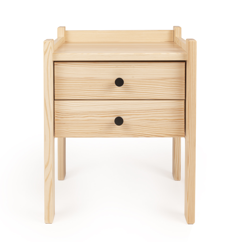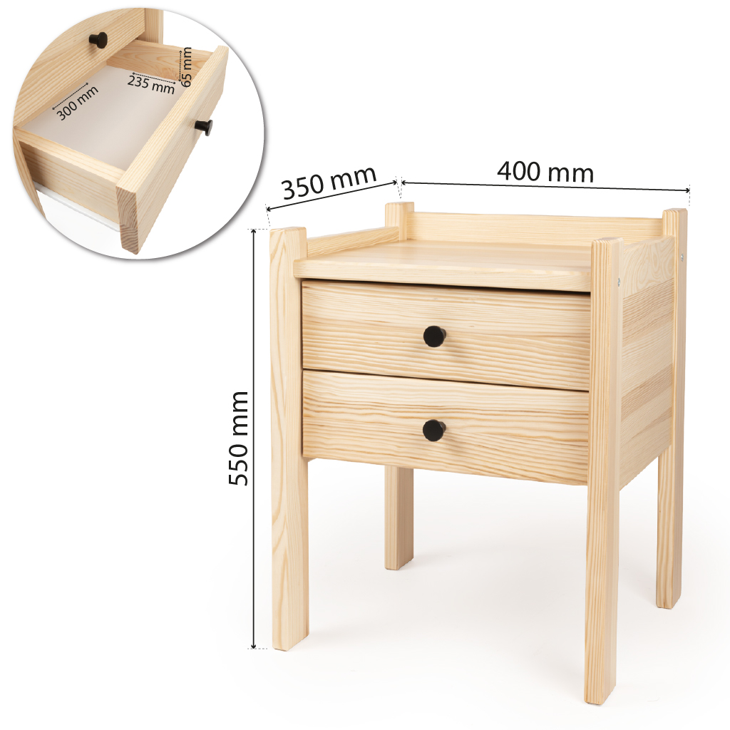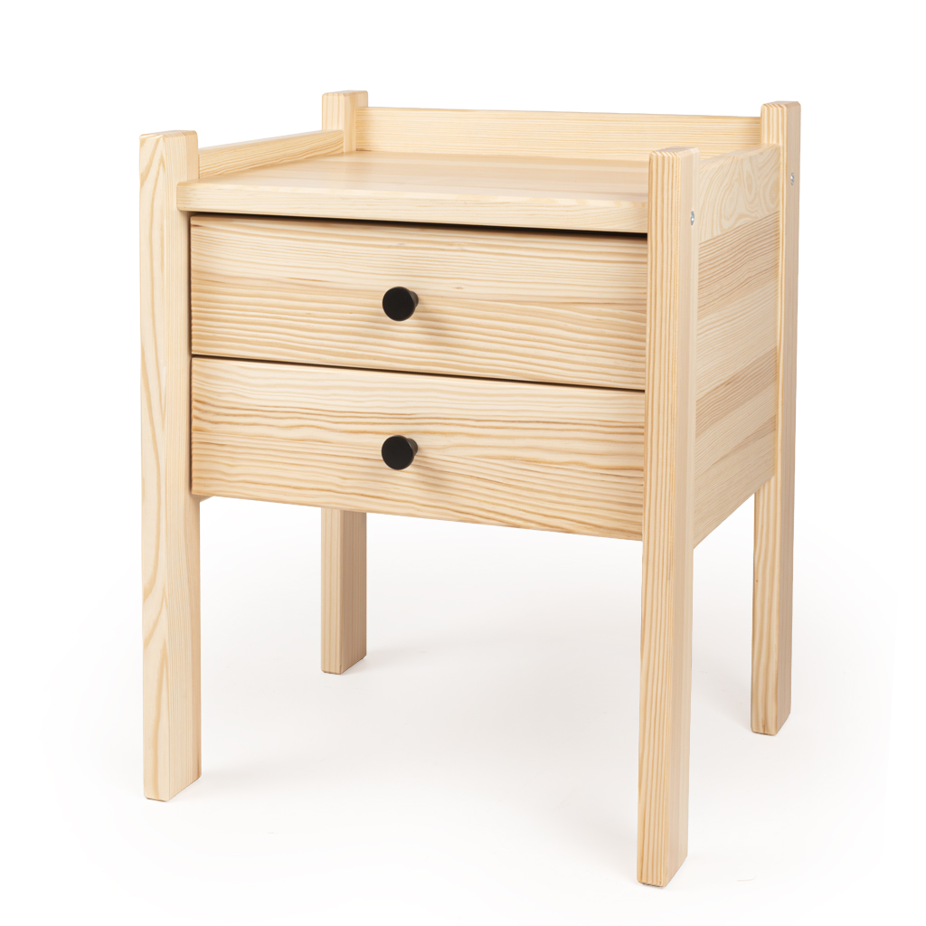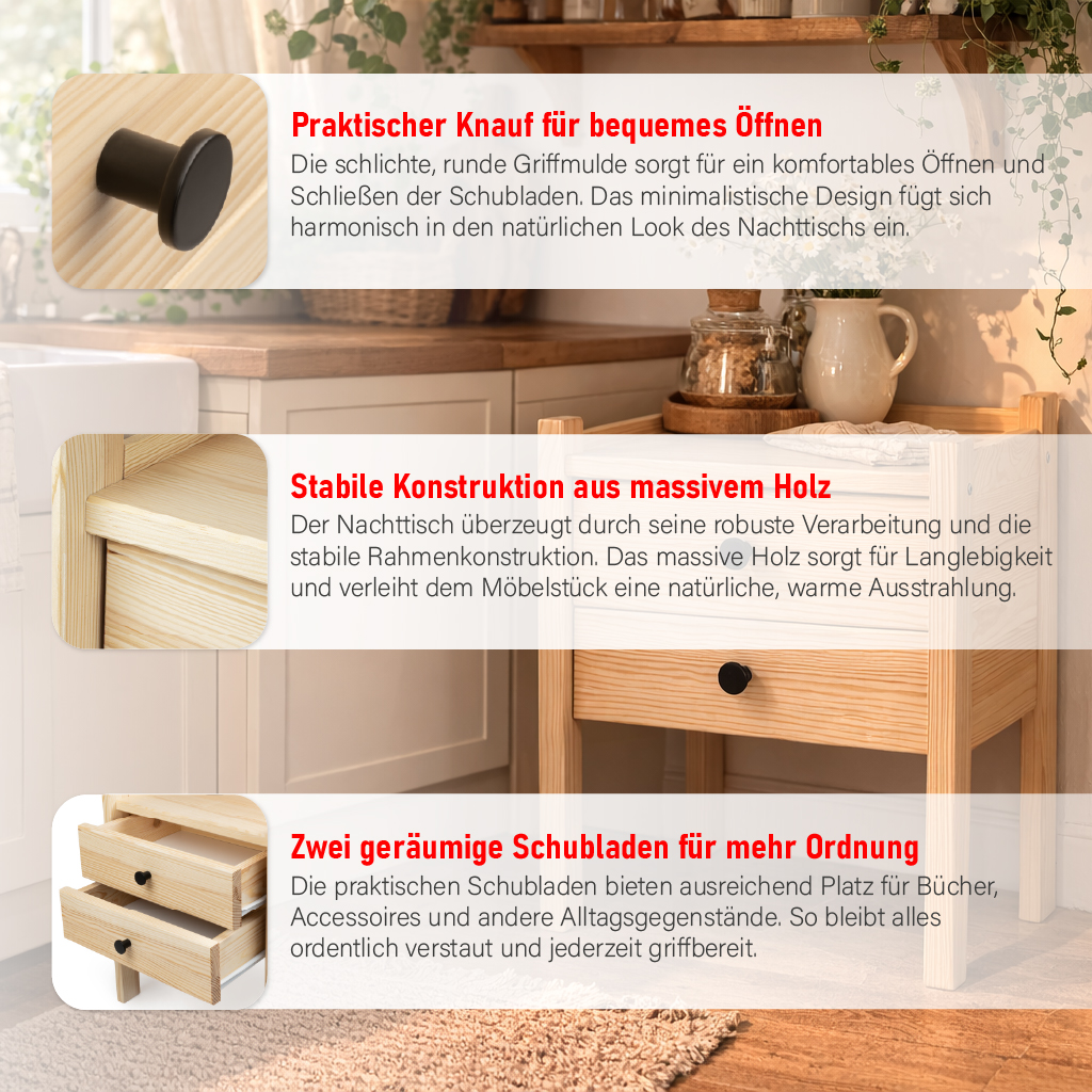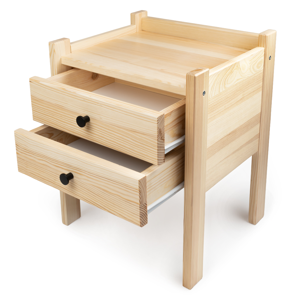 Nachttisch Massivholz mit 2 Schubladen – Design Nachtkonsole Natur (55 cm Höhe)