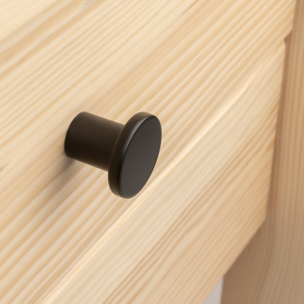 - Design: Zeitloser Natur-Look mit modernen schwarzen Rundgriffen.