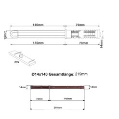 Der Unsichtbarer Regalträger 14×140 mm ist eine verdeckte Regalhalterung für Schweberegale und Regalböden ohne sichtbare Winkel. Der Metallkern mit Kunststoffummantelung sorgt für formstabilen Sitz, die Spreizmechanik fixiert sicher im Dübel.